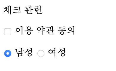 체크 관련한 type으로 대표적으로 체크박스와 라디오버튼이있다.